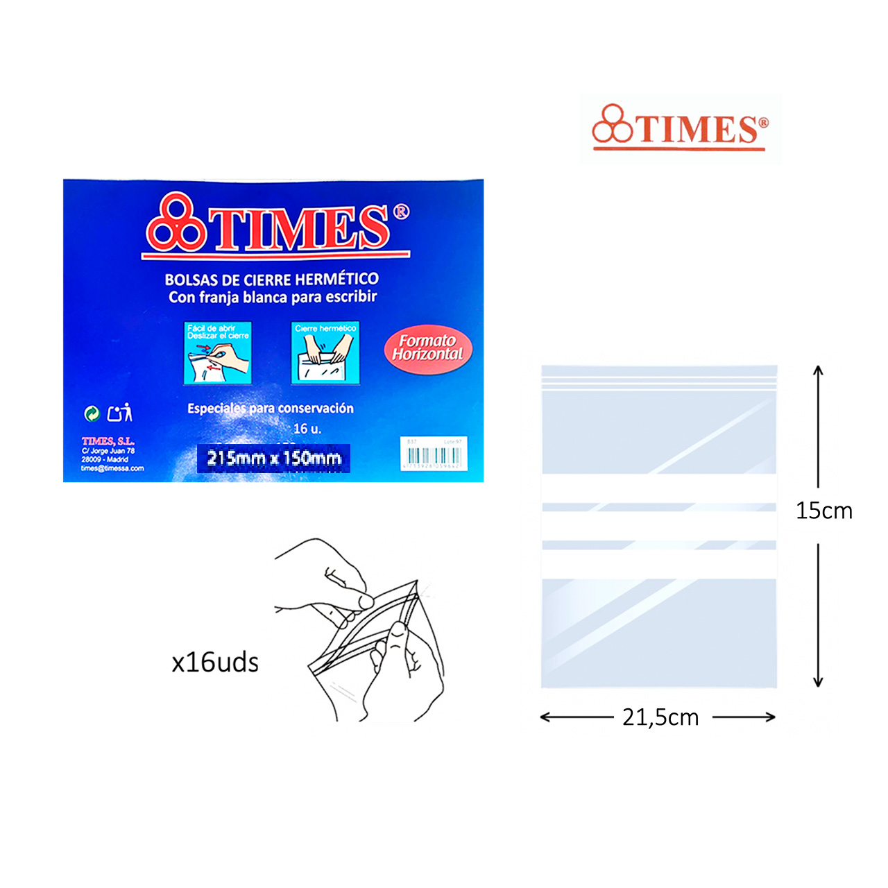 Bolsas de cierre hermético 21,5x15cm Times pack 16uds