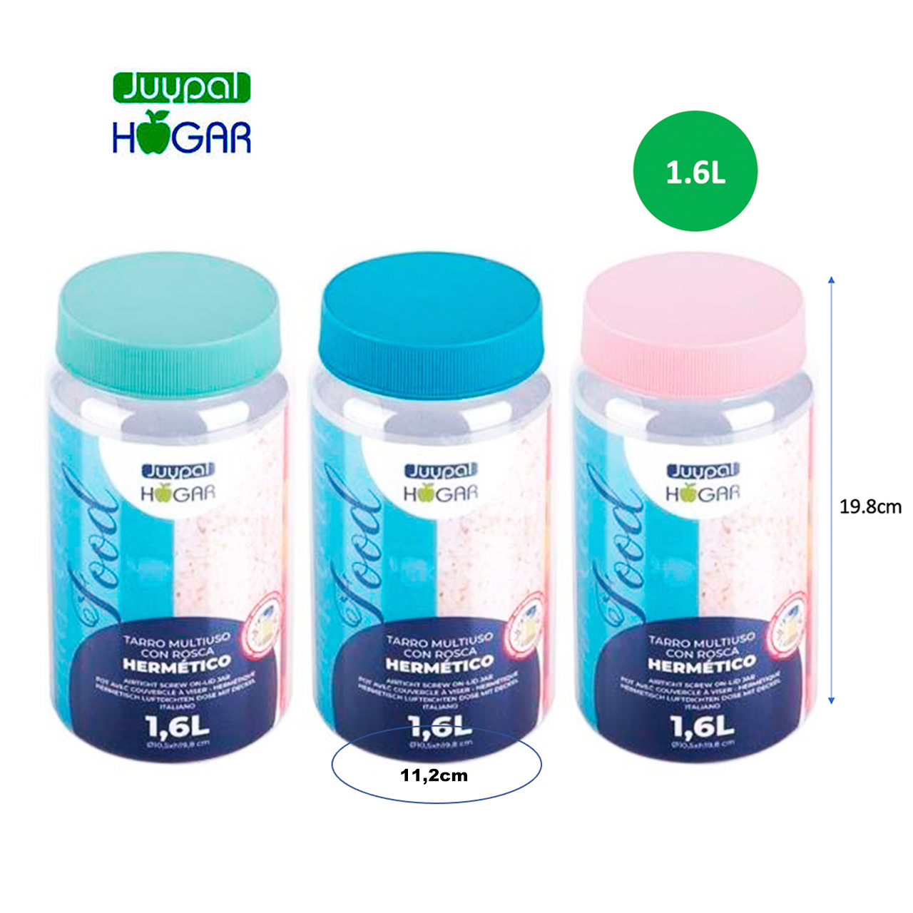 Este tarro de pet es ideal para el almacenar alimentos y bebidas. Resistente al impacto de caidas y golpes.